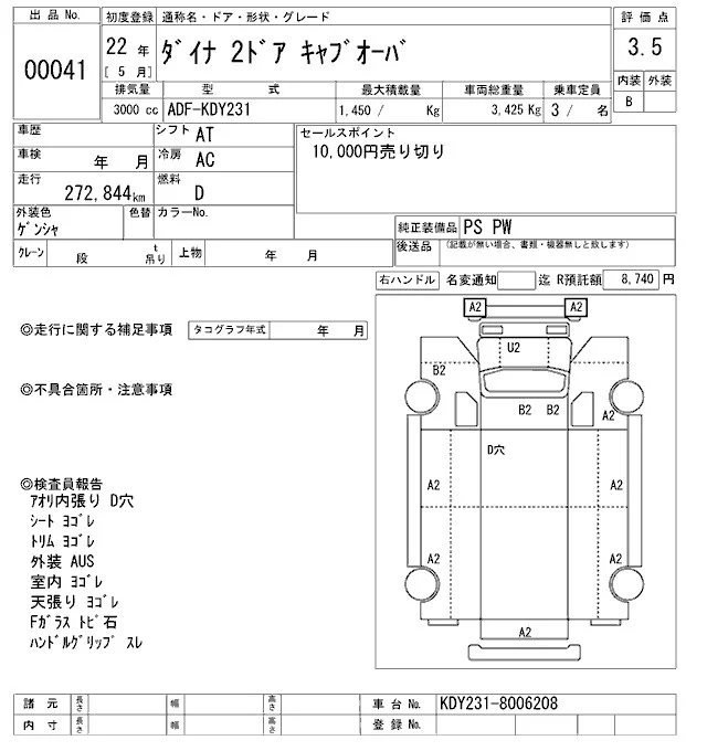 Toyota DYNA с аукциона Японии ARAI Oyama VT лот № 41