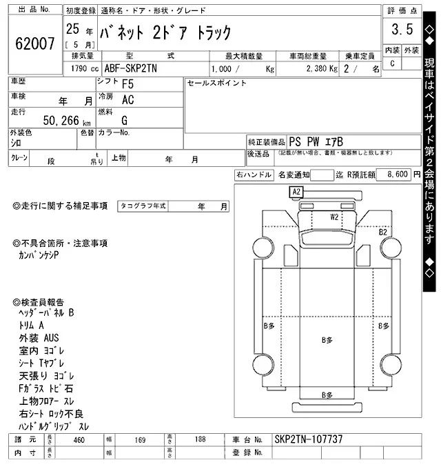 Nissan VANETTE TRUCK с аукциона Японии ARAI Oyama VT лот № 62007