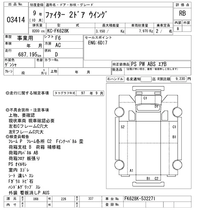 Mitsubishi FUSO FIGHTER с аукциона Японии ARAI Oyama VT лот № 3414