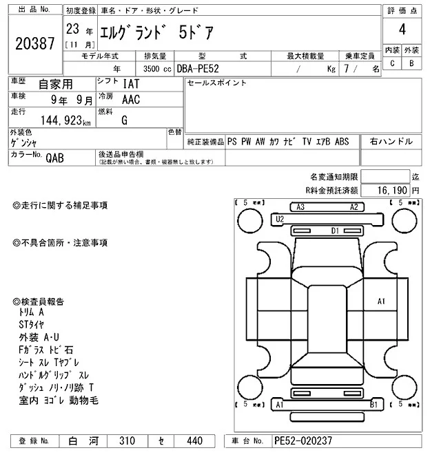 Nissan ELGRAND с аукциона Японии ARAI Oyama VT лот № 20387