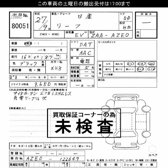Nissan LEAF с аукциона Японии JU Gifu лот № 80051