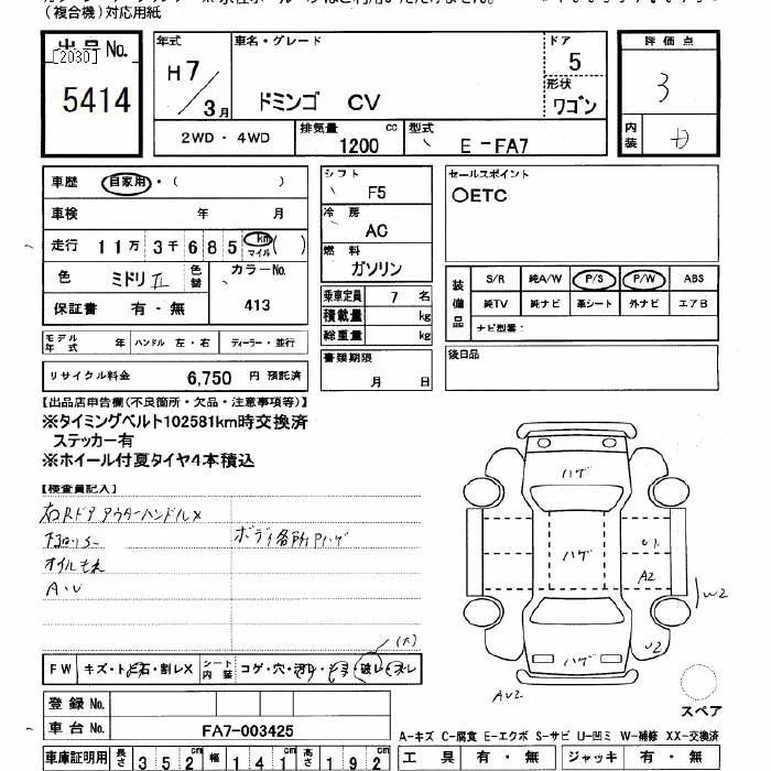 Subaru DOMINGO с аукциона Японии JU Gifu лот № 5414