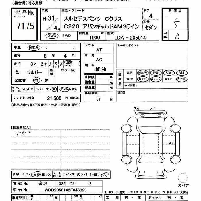 Mercedes-Benz C CLASS с аукциона Японии JU Gifu лот № 7175