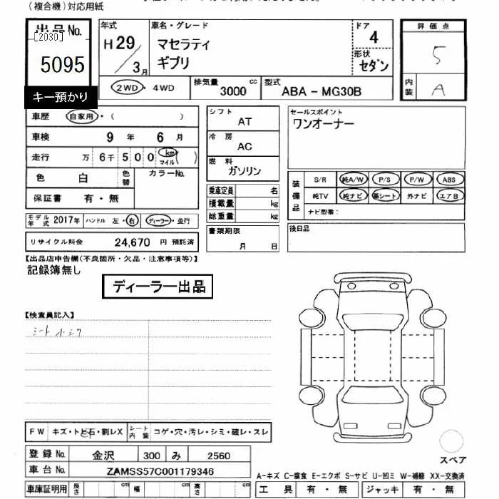 Maserati GHIBLI с аукциона Японии JU Gifu лот № 5095