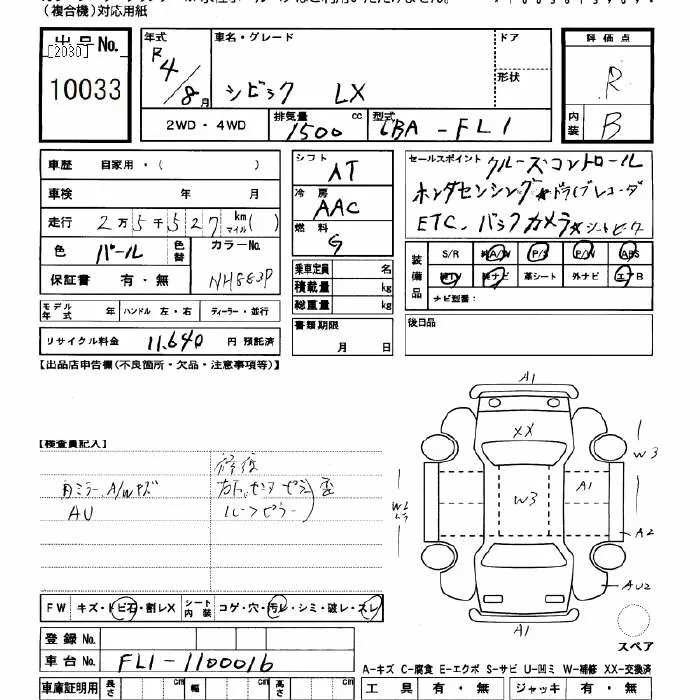 Honda CIVIC с аукциона Японии JU Gifu лот № 10033
