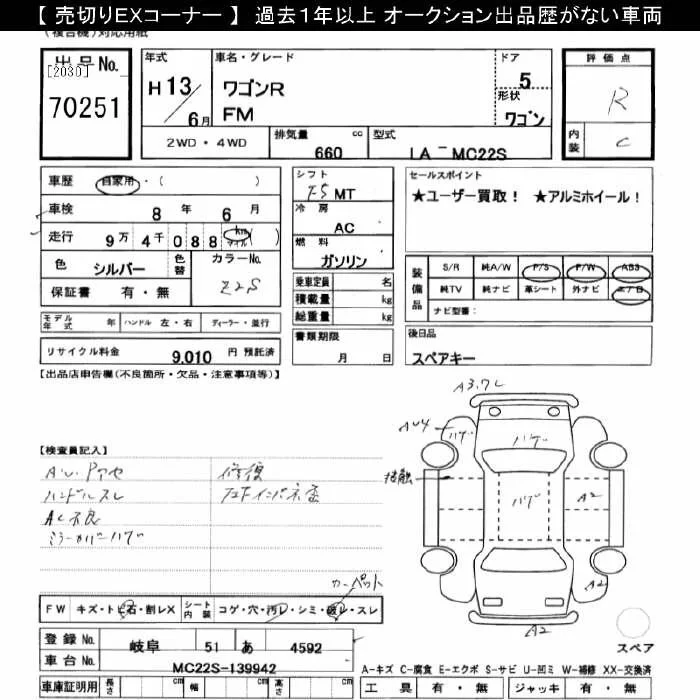 Suzuki WAGON R с аукциона Японии JU Gifu лот № 70251