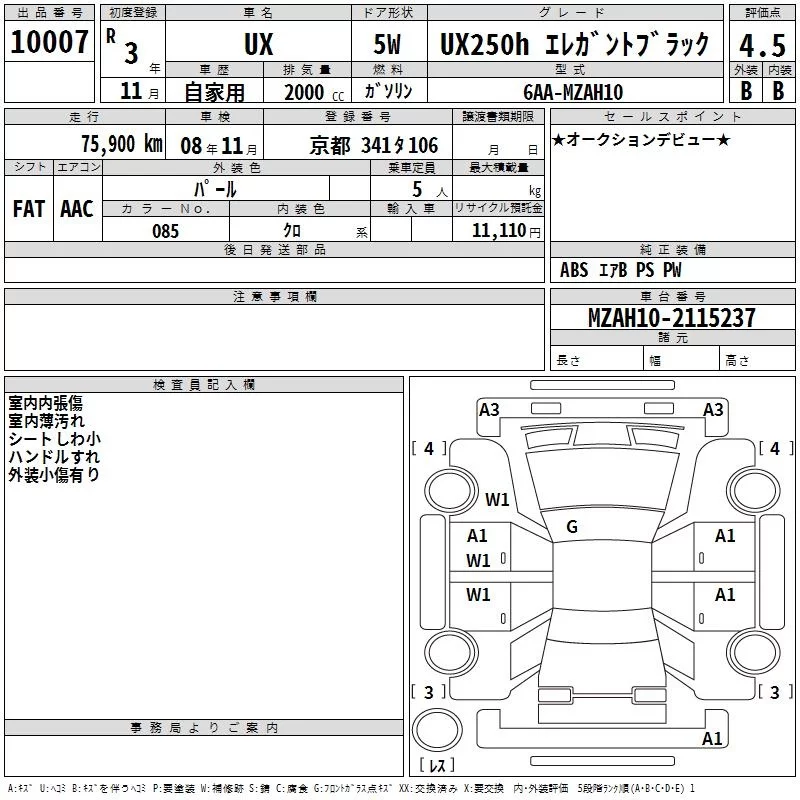 Lexus UX с аукциона Японии TAA Hyogo лот № 10007