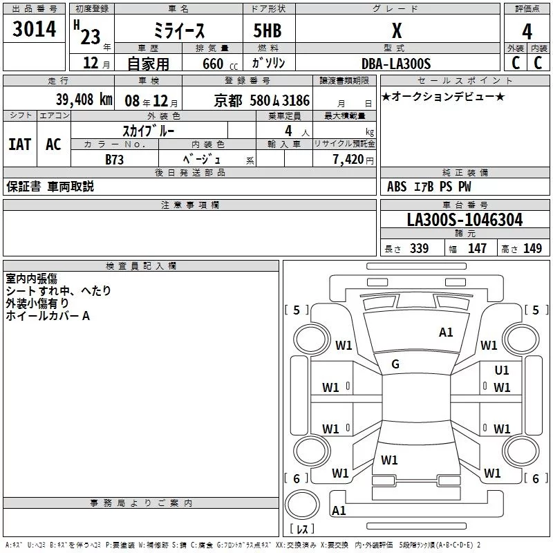 Daihatsu MIRA E S с аукциона Японии TAA Hyogo лот № 3014