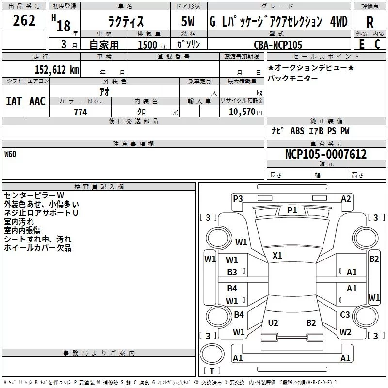 Toyota RACTIS с аукциона Японии TAA Hyogo лот № 262