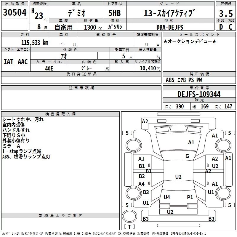 Mazda DEMIO с аукциона Японии TAA Hyogo лот № 30504