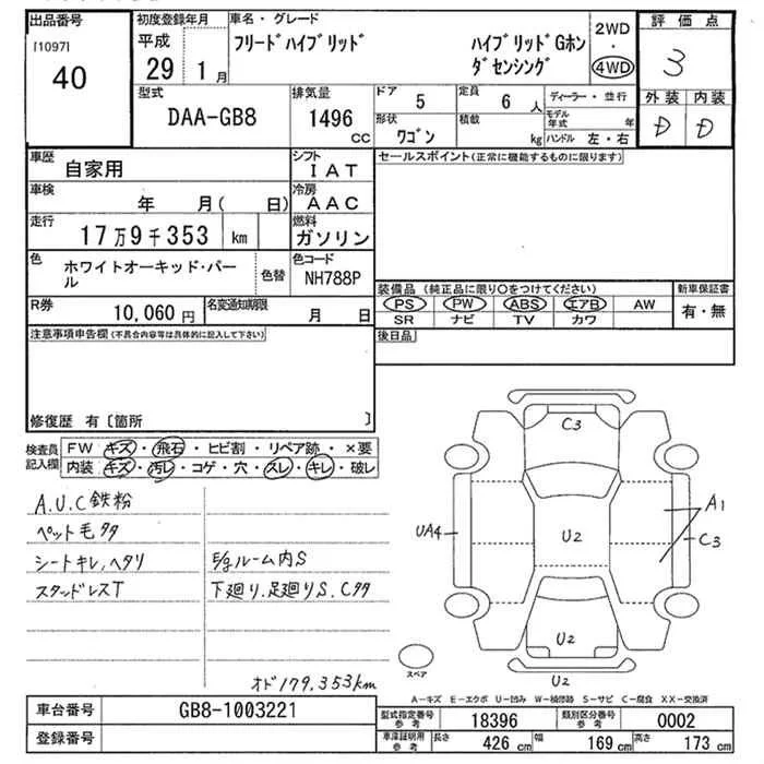 Honda FREED с аукциона Японии JU Yamagata лот № 40