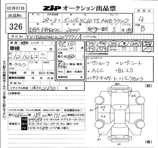 Volvo XC60 с аукциона Японии ZIP Tokyo лот № 326