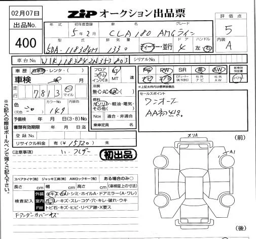 Mercedes-Benz CLA CLASS с аукциона Японии ZIP Tokyo лот № 400