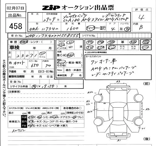 Mercedes-Benz CLA CLASS с аукциона Японии ZIP Tokyo лот № 458