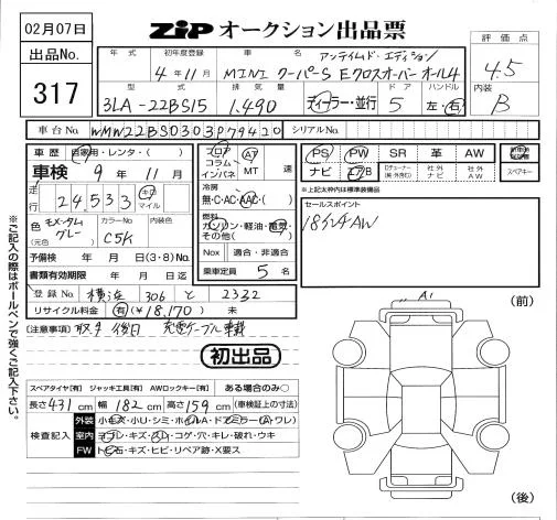BMW MINI с аукциона Японии ZIP Tokyo лот № 317