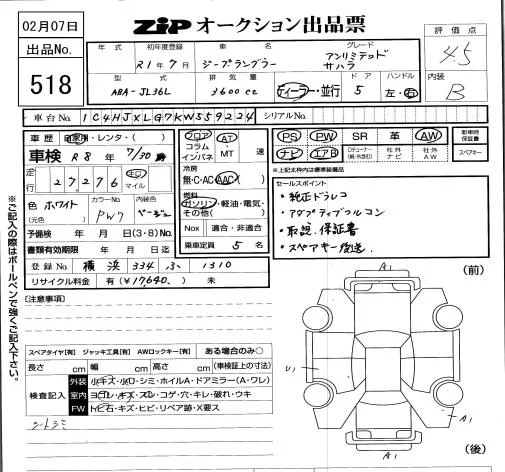 Chrysler JEEP WRANGLER с аукциона Японии ZIP Tokyo лот № 518