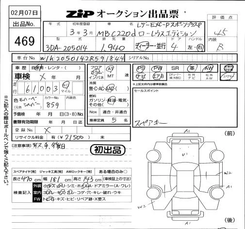 Mercedes-Benz C CLASS с аукциона Японии ZIP Tokyo лот № 469