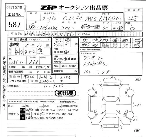 Mercedes-Benz C CLASS с аукциона Японии ZIP Tokyo лот № 587