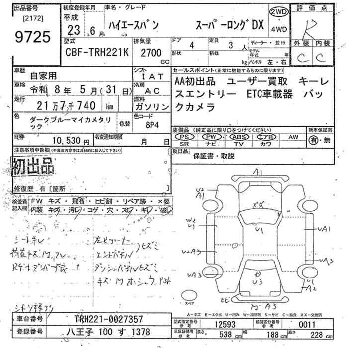 Toyota HIACE VAN с аукциона Японии JU Tokyo лот № 9725