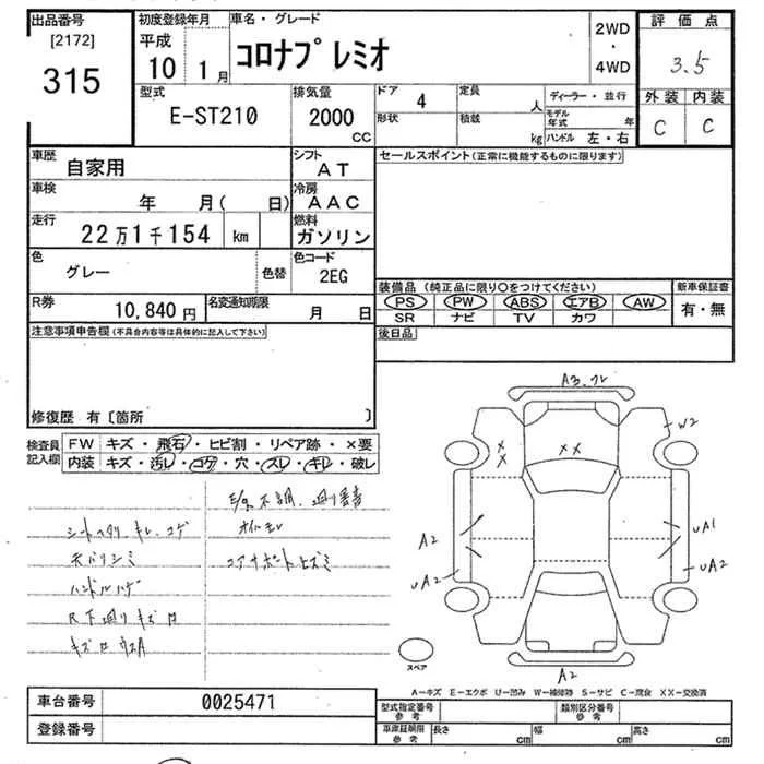 Toyota CORONA PREMIO с аукциона Японии JU Tokyo лот № 315