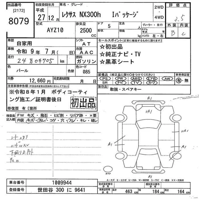 Lexus NX с аукциона Японии JU Tokyo лот № 8079