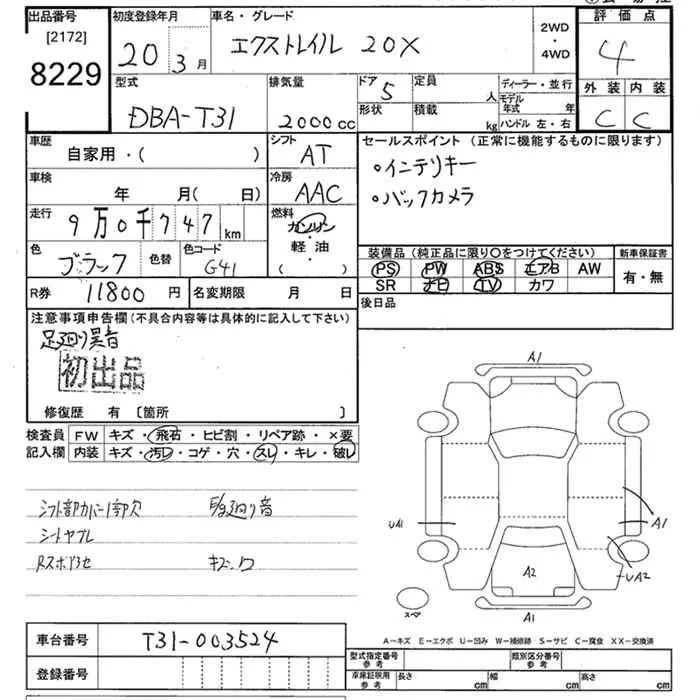 Nissan X-TRAIL с аукциона Японии JU Tokyo лот № 8229