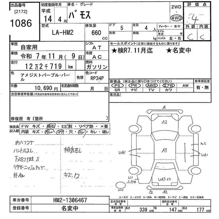 Honda VAMOS с аукциона Японии JU Tokyo лот № 1086