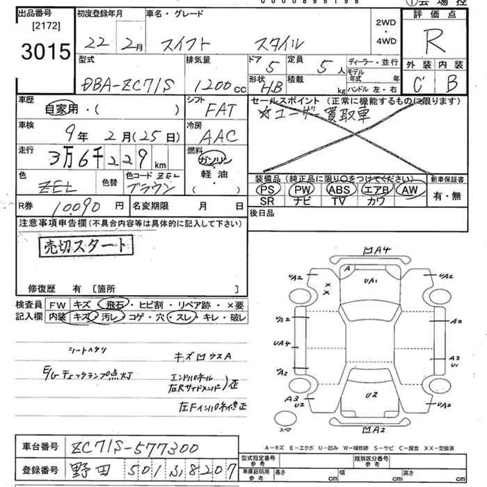 Suzuki SWIFT с аукциона Японии JU Tokyo лот № 3015