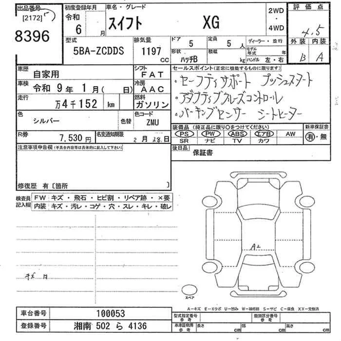 Suzuki SWIFT с аукциона Японии JU Tokyo лот № 8396