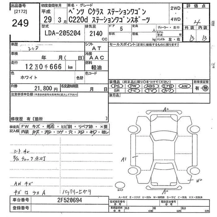 Mercedes-Benz C CLASS с аукциона Японии JU Tokyo лот № 249