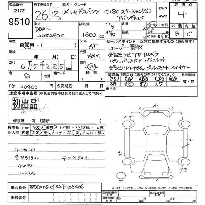 Mercedes-Benz C CLASS с аукциона Японии JU Tokyo лот № 9510