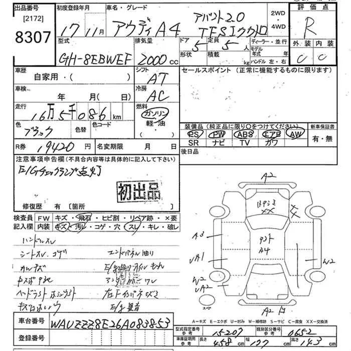 Audi A4 с аукциона Японии JU Tokyo лот № 8307