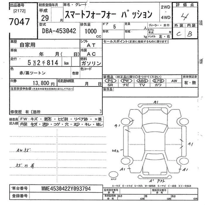 Smart FORFOUR с аукциона Японии JU Tokyo лот № 7047