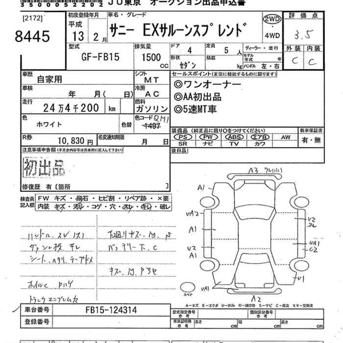 Nissan SUNNY с аукциона Японии JU Tokyo лот № 8445