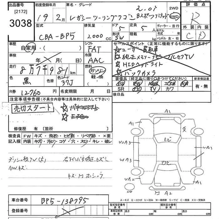Subaru LEGACY с аукциона Японии JU Tokyo лот № 3038