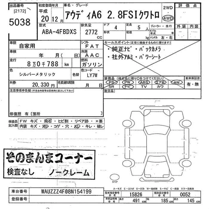 Audi A6 с аукциона Японии JU Tokyo лот № 5038