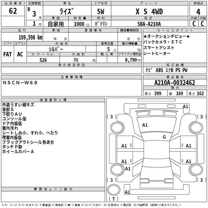 Toyota RAIZE с аукциона Японии TAA Kinki лот № 62