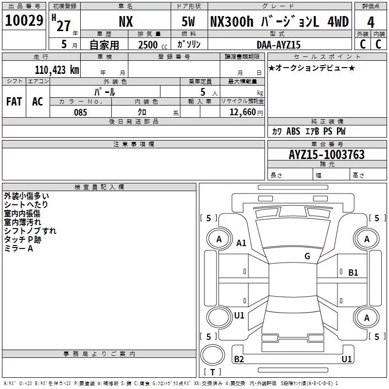Lexus NX с аукциона Японии TAA Kinki лот № 10029