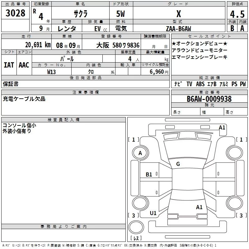 Nissan SAKURA с аукциона Японии TAA Kinki лот № 3028