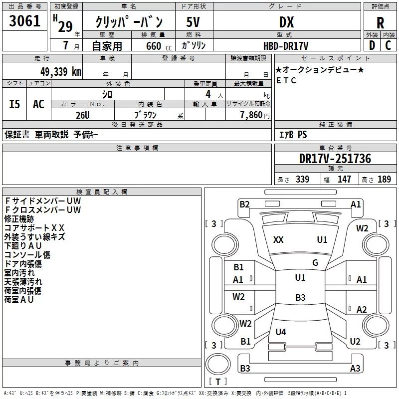 Nissan CLIPPER VAN с аукциона Японии TAA Kinki лот № 3061