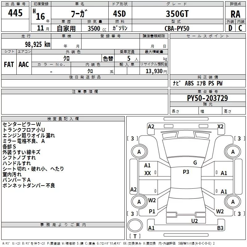 Nissan FUGA с аукциона Японии TAA Kinki лот № 445