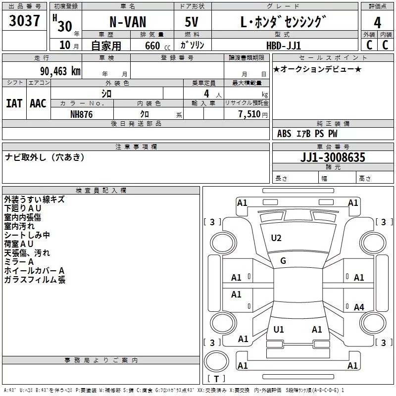 Honda N VAN с аукциона Японии TAA Kinki лот № 3037