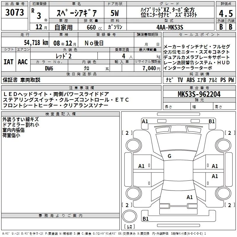 Suzuki SPACIA GEAR с аукциона Японии TAA Kinki лот № 3073
