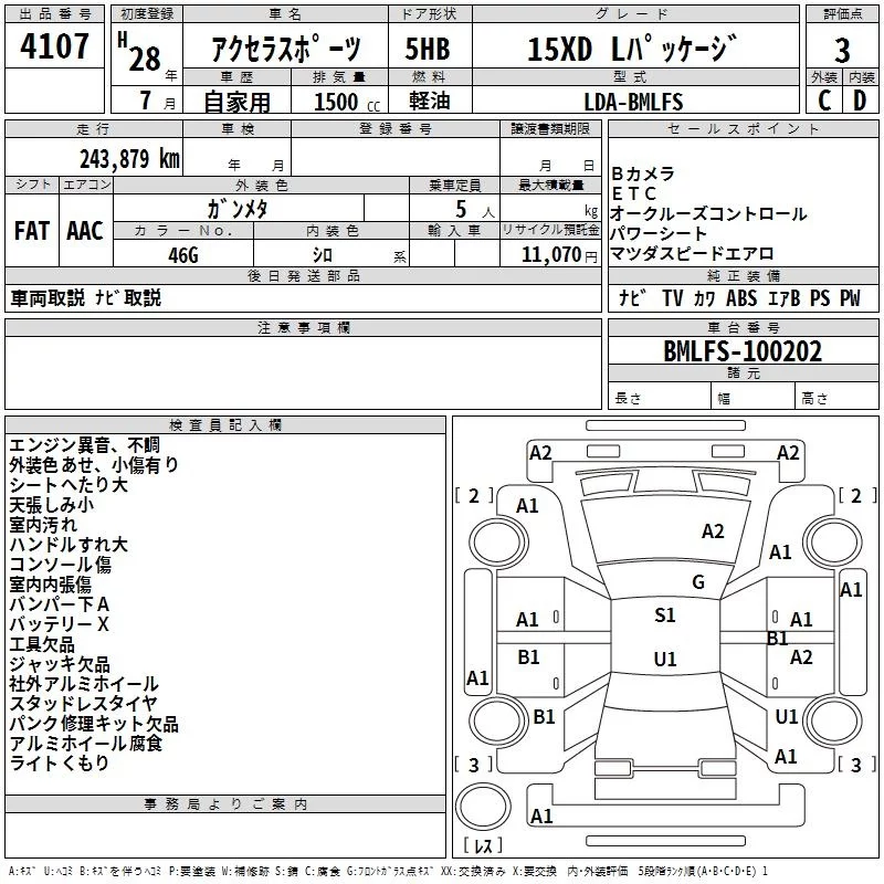 Mazda AXELA с аукциона Японии TAA Hiroshima лот № 4107