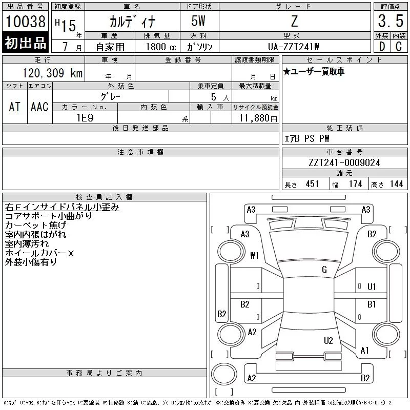 Toyota CALDINA с аукциона Японии CAA Tokyo лот № 10038