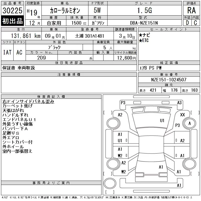 Toyota COROLLA RUMION с аукциона Японии CAA Tokyo лот № 30225
