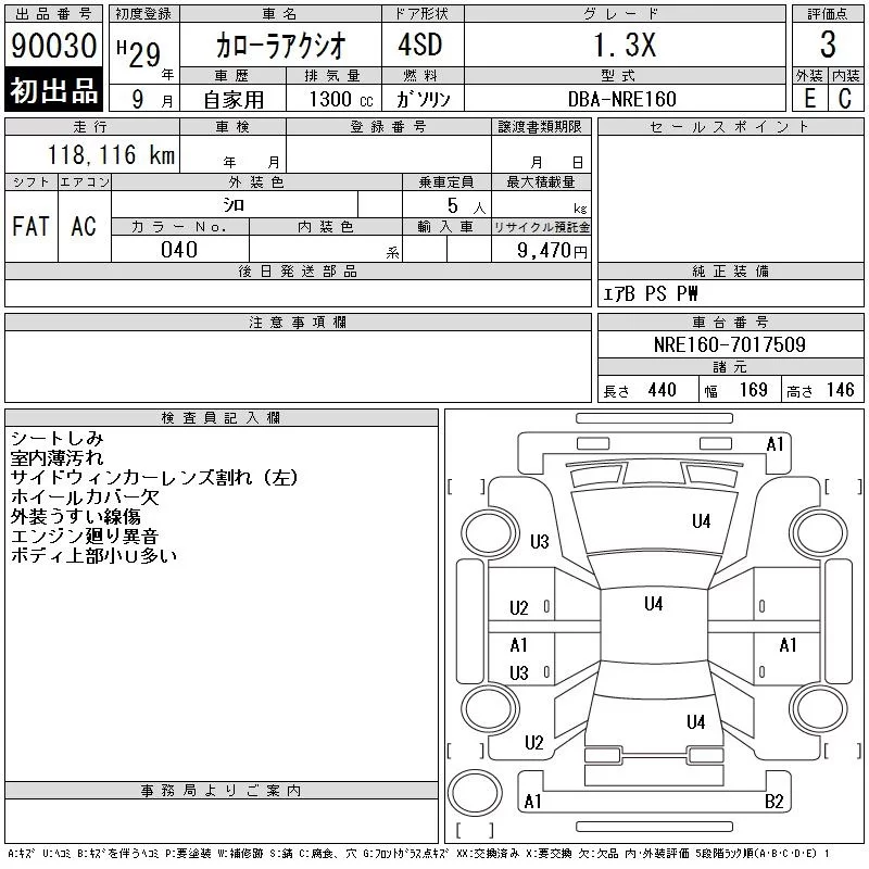 Toyota COROLLA AXIO с аукциона Японии CAA Tokyo лот № 90030