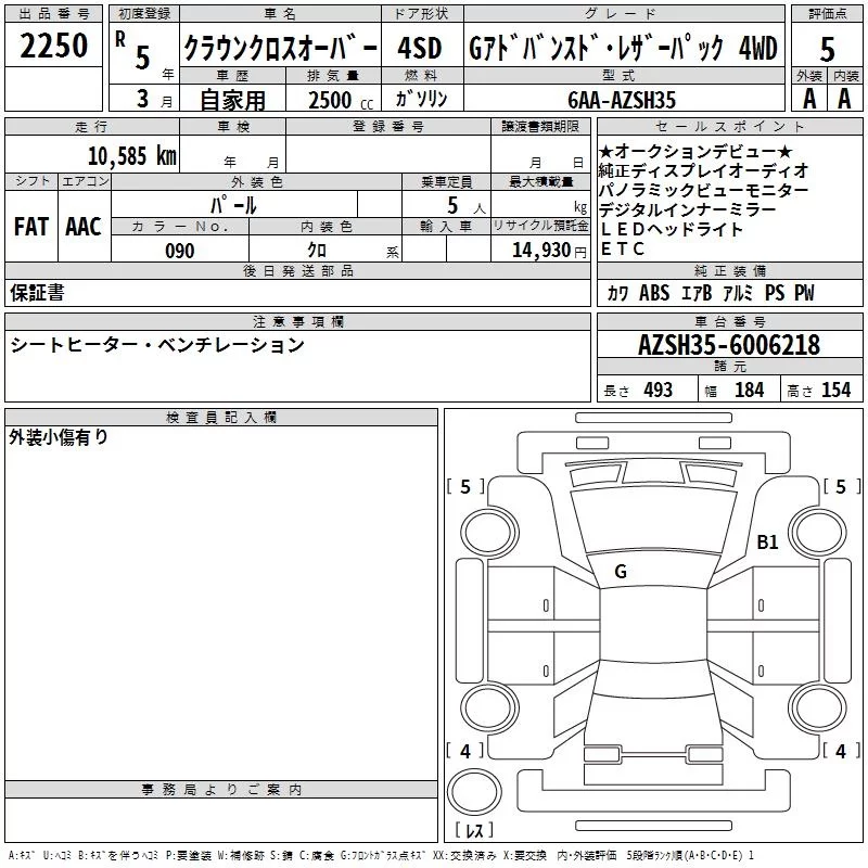 Toyota CROWN CROSSOVER с аукциона Японии TAA Kinki лот № 2250