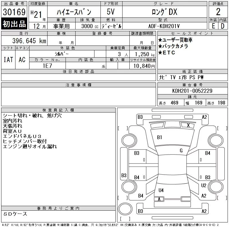 Toyota HIACE VAN с аукциона Японии CAA Tokyo лот № 30169