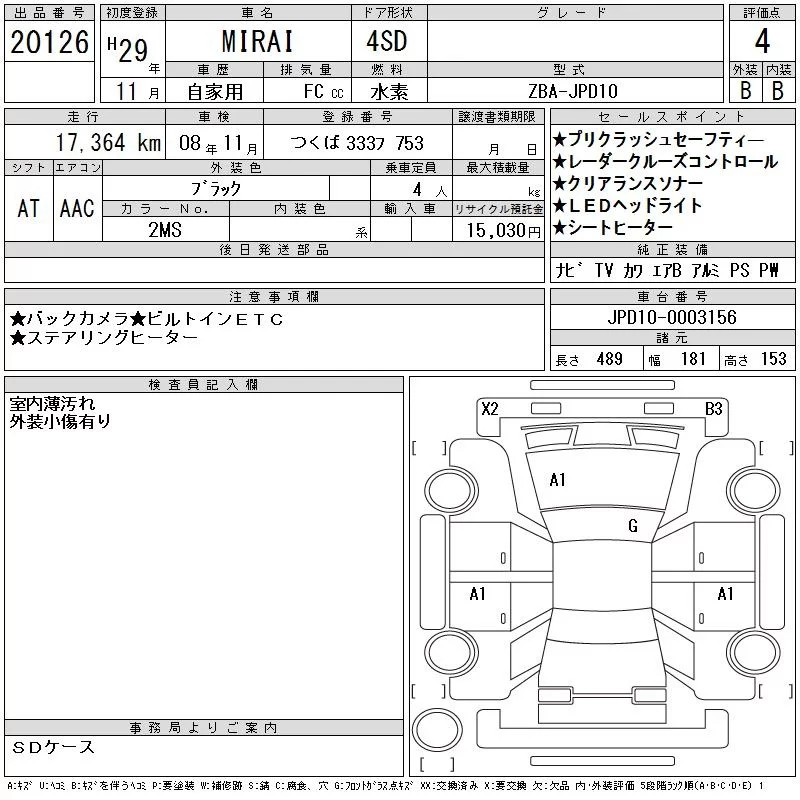Toyota MIRAI с аукциона Японии CAA Tokyo лот № 20126